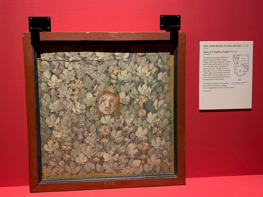 My favorite pieces from the Pompeii site were “Mask Amidst Bunches of Grapes and Vines (9798),” “Hercules and Omphale (9000),” and “Cassandra’s Prophecy (111476).”