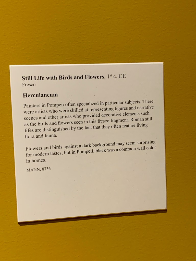 My favorite pieces from the Herculaneum site were “Still Life with Birds (8736),” “Villa of Papyri (9423),” and “Still Life with Papyri (4668).”