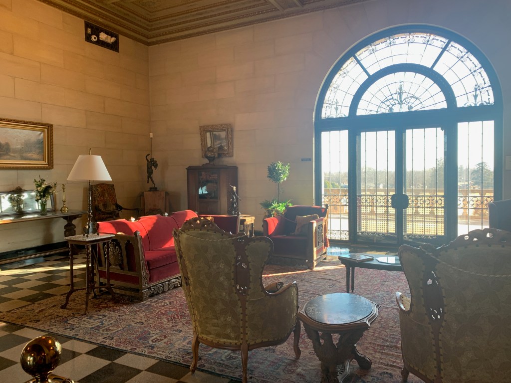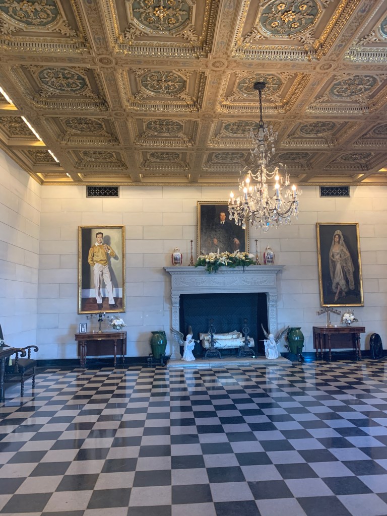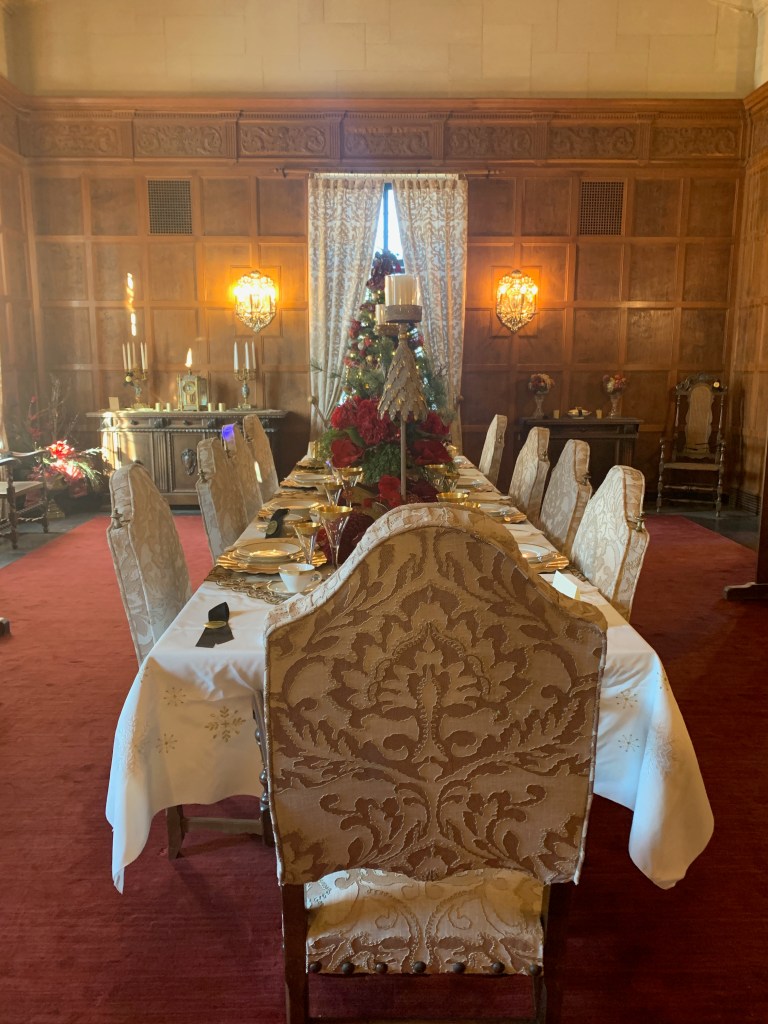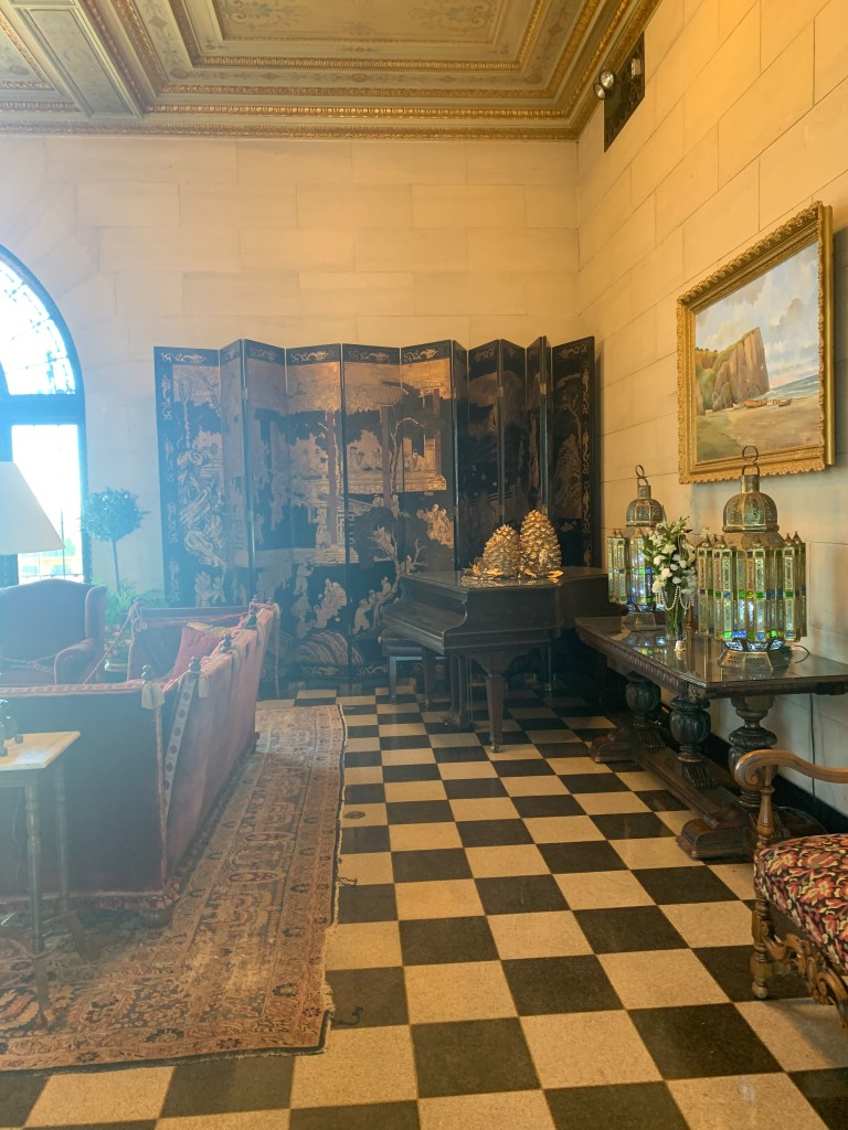 The inside is ornately decorated with beautiful chandeliers, intricate woodworks, and lavish designs on the ceilings. Several artists and decorators were tasked with making the home elegant. E.W. Marland wanted to live in an actual palace according to the tour book we received at the front desk. I mean, it sure looks like a castle to me!