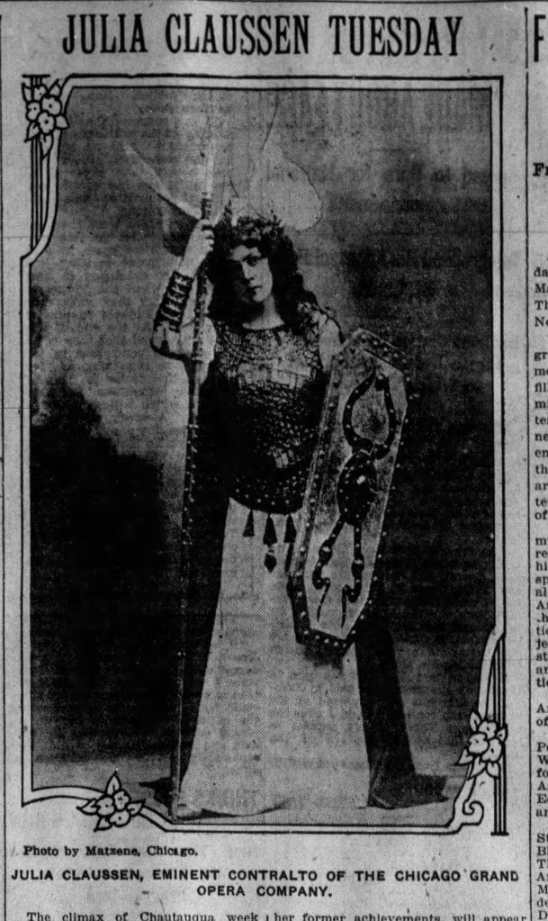 “Julia Claussen Tuesday,” The Chattanooga News (Chattanooga, TN), June 12, 1916. [Page 7].