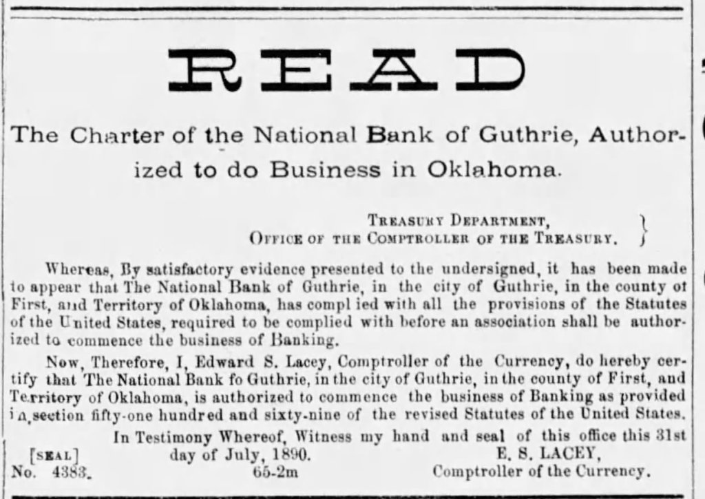 First National Bank Organized – Guthrie Democrat – Guthrie OK – Aug 13 1890 (Page 2)