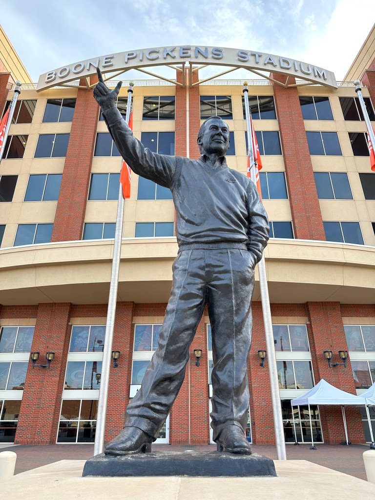 Oklahoma State has installed two bronzes outside of the stadium to honor T. Boone Pickens and Barry Sanders. The bronzes were created by Harold T. Holden.