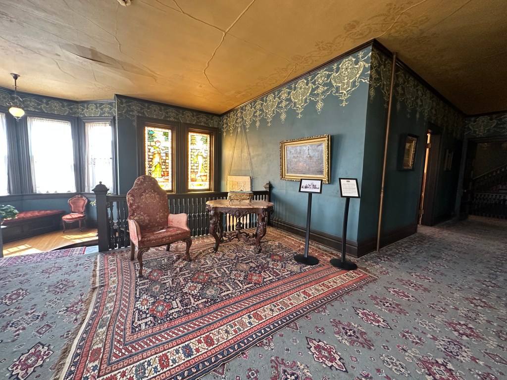 The guests would often stay on the third floor. The man who painted the home stayed on the third floor for two years while completing the project. The detailed stenciling and painting throughout the home is AMAZING!