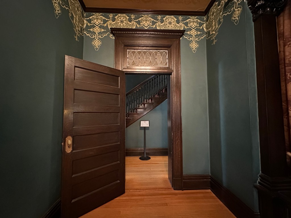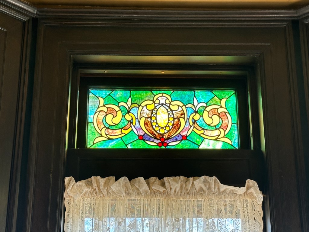 No details were spared in creating the Overholser Mansion. Look closely at the photos below… Do you see the letter “O” in the stand glass on the right? I also thought it was super interesting they were able to put their family crest in the glass shown on the right.