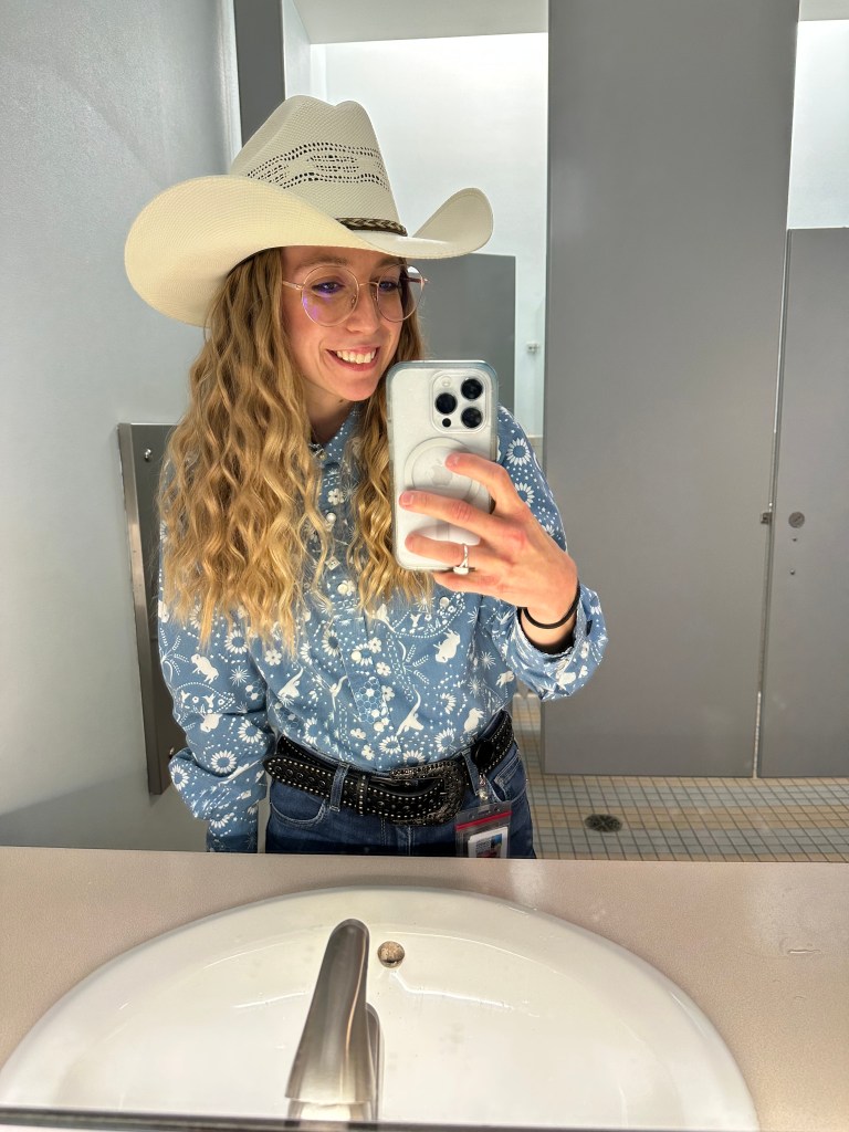 This black felt cowboy hat is special because it was my dad’s wedding hat. He told me to try it on one day and it fit my head and he said I could have it and wear it to work!