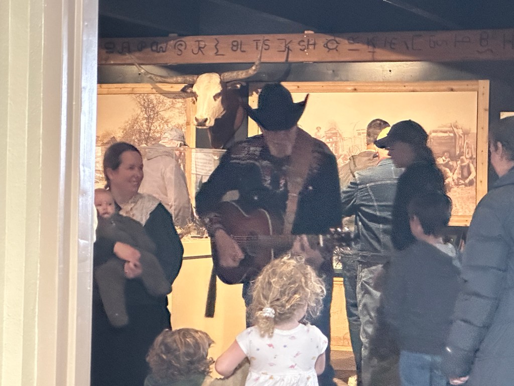 There were different kinds of live music for people to enjoy throughout the day. Cowboy Jim Garling played the guitar and sang in the museum. Kyle Dillingham played and sang on the stage. There were other people stationed in various places throughout the grounds also playing music.
