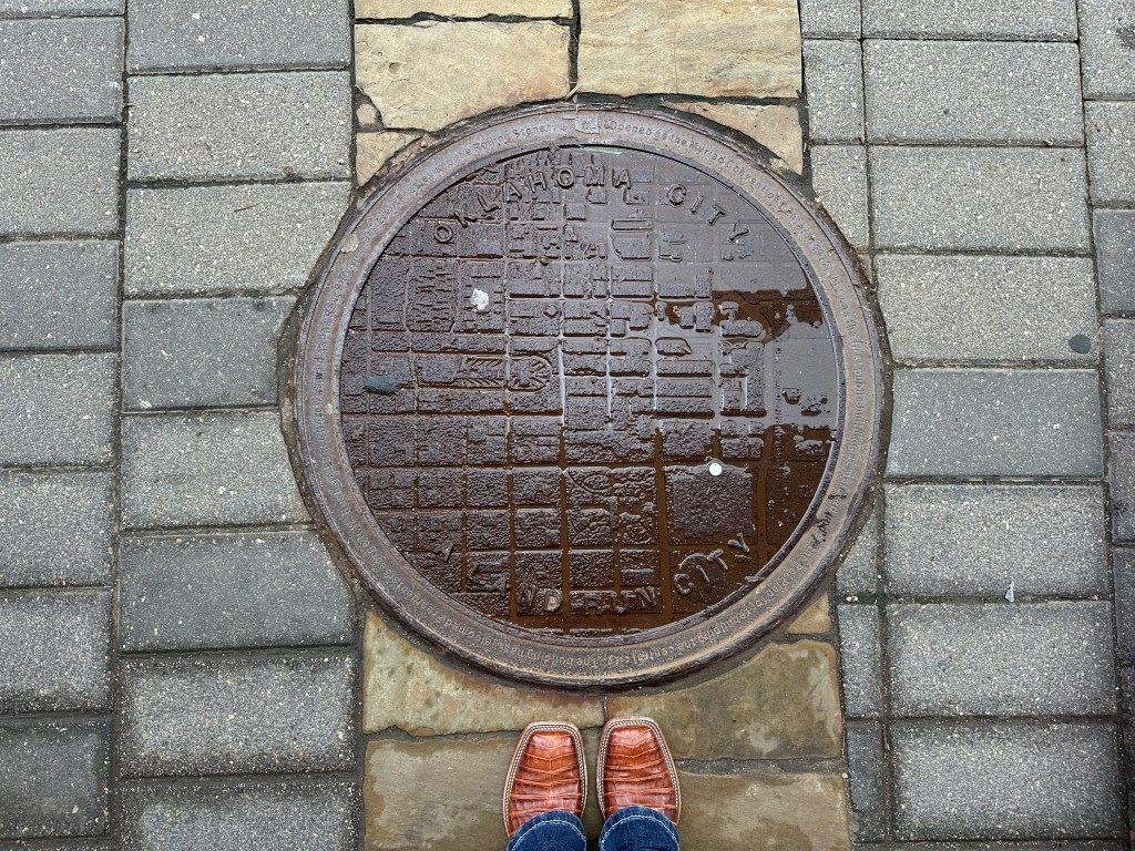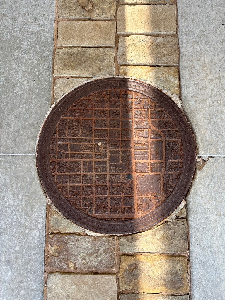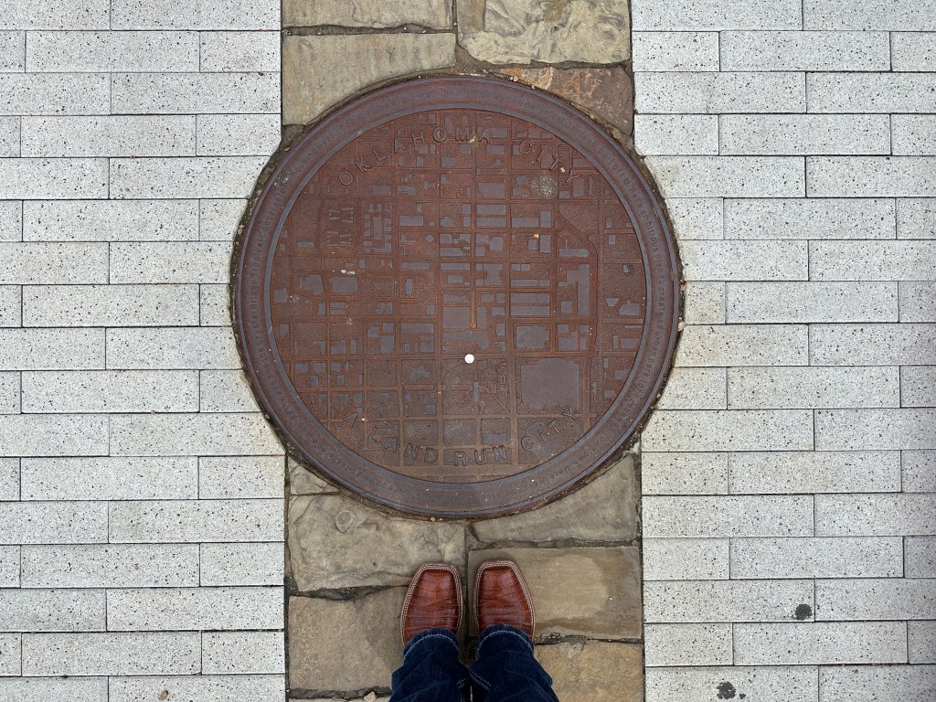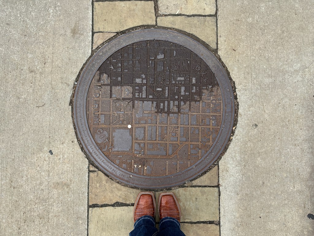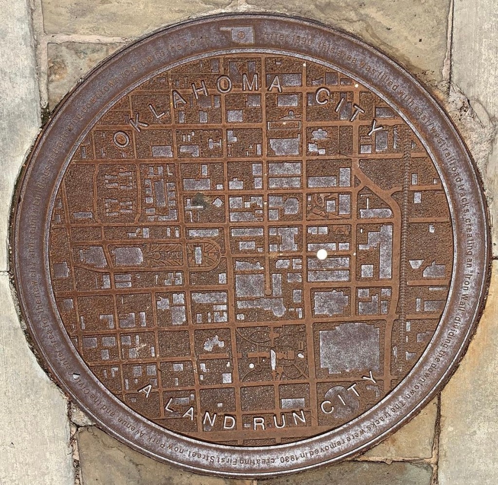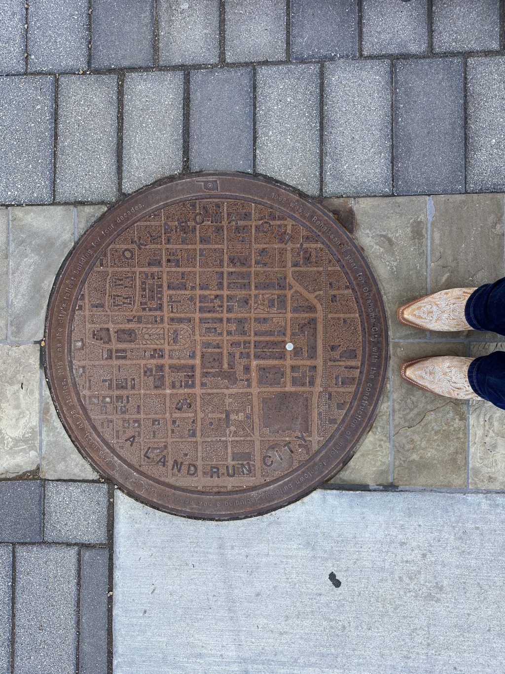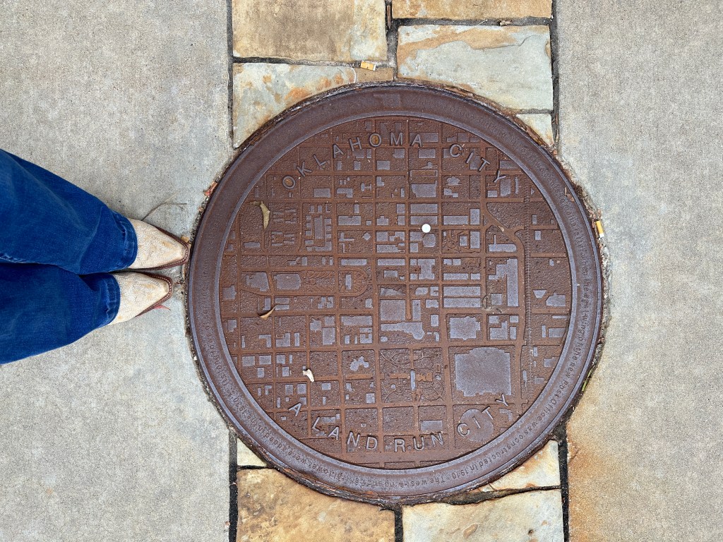 Hey, friend! Welcome back to another post. Today, I wanted to show you some of these cool maps on the manhole covers throughout Oklahoma City. Each cover has a fun fact about Oklahoma history around the edge so of course we’re going to talk about them. I’ll update this post as I continue finding more of the maps.