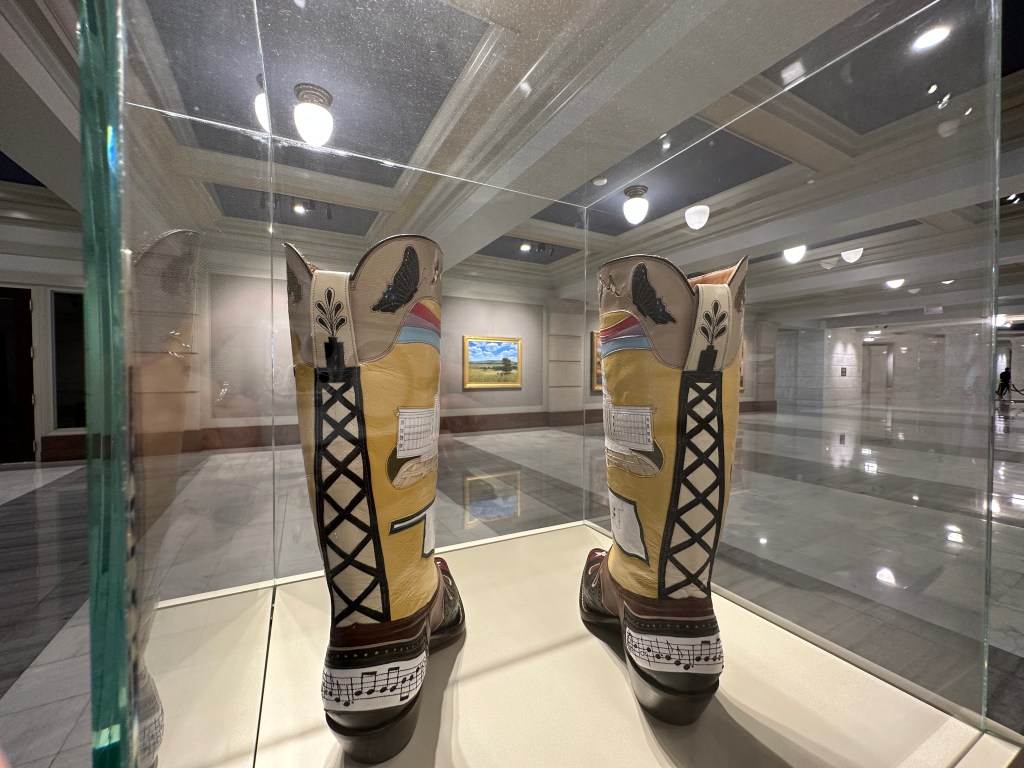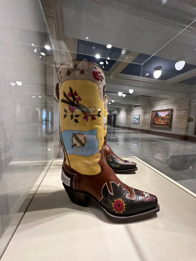 These cowboy boots were created by Lisa Sorrel. The detail on these boots is amazing – make sure to scroll through the carousel to see all the aspects of Oklahoma history.