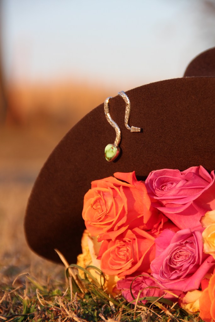 Matthew Herring of Hallet Peak invented the “Brim Biter.” I love putting this Royston piece on my black, orange, or brown hats!