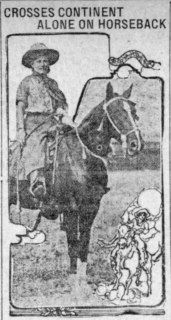 “Crosses Continent Alone On Horseback.” Evening World-Herald (Omaha, Nebraska), July 21, 1911.