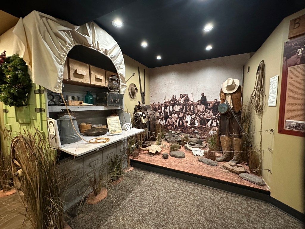 The Cherokee Strip Museum explores the history of the region from 1893 to the 1930s. They collect and preserve the history of the Cherokee Outlet through artifacts, writings, photos, and interpretive text. The main museum building contains exhibitions on farming, ranching, homesteading, Indigenous peoples, business, and more. You can see a few examples below!