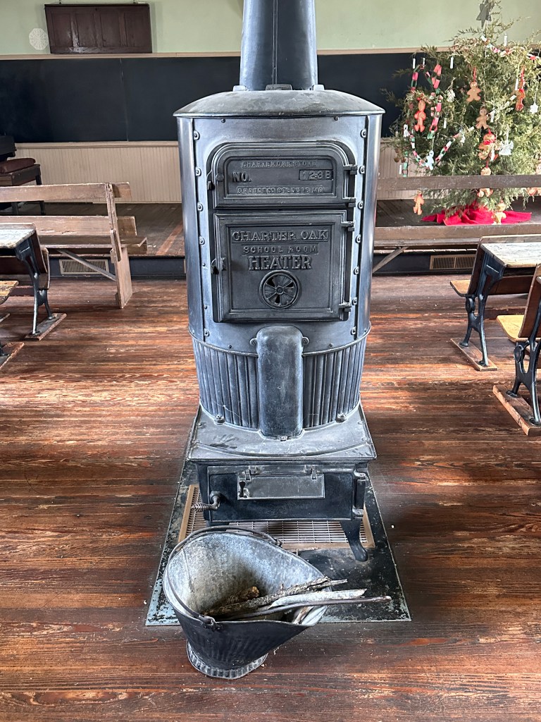 The school building was moved to Perry in 1971 to the Cherokee Strip Museum grounds. The building came with a lot of its original furnishings. I loved the old cast iron stove in the middle of the room!