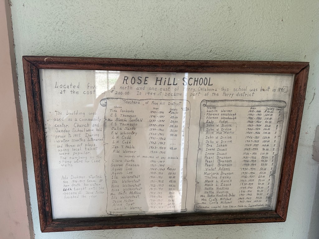 The Rose Hill School was built in 1895 northeast of Perry. This one room school house was where students in the first through eighth grade came to learn.