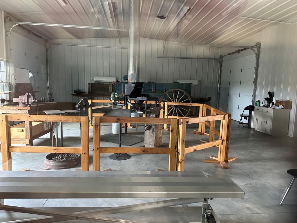 Through the second set of double doors was a large shop where blacksmithing demonstrations are done. They had a small set of bleachers where people could sit and watch.