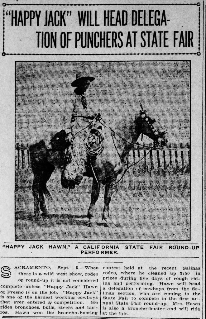 “Happy Jack” Will Head Delegation of Punchers At State Fair.” Oakland Enquirer (Oakland, California), September 12, 1912.