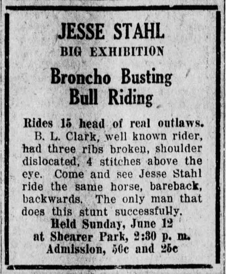 I was able to track Jesse Stahl across several newspapers for a couple of decades and this is what the sources have to say about this talented cowboy.