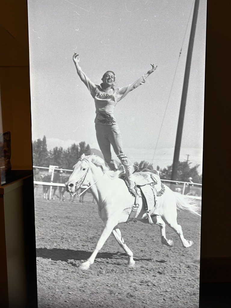 Shirley Lucas and her sister Sharon were trick riders! The green and red boots are so fun – I love the colors and the flowers. You can read more about the Lucas sisters in, It Takes A Good Horse.