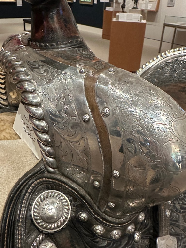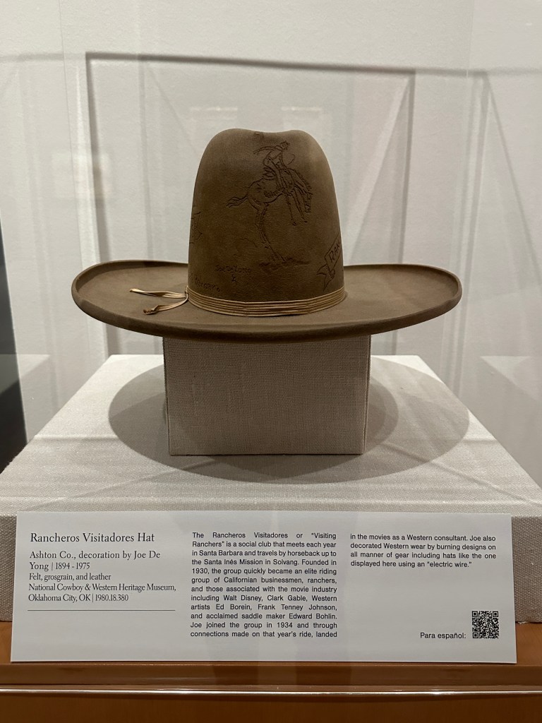 I looked at the hat on exhibition and thought it looked very familiar. Upon getting back home and writing this article I realized I had seen this hat before because it is a part of the collection from The Cowboy and was on loan. One of the former curators at The Cowboy had shown this piece to me down in the vault for a social media post! It was cool to see it on exhibition where many people could see it.