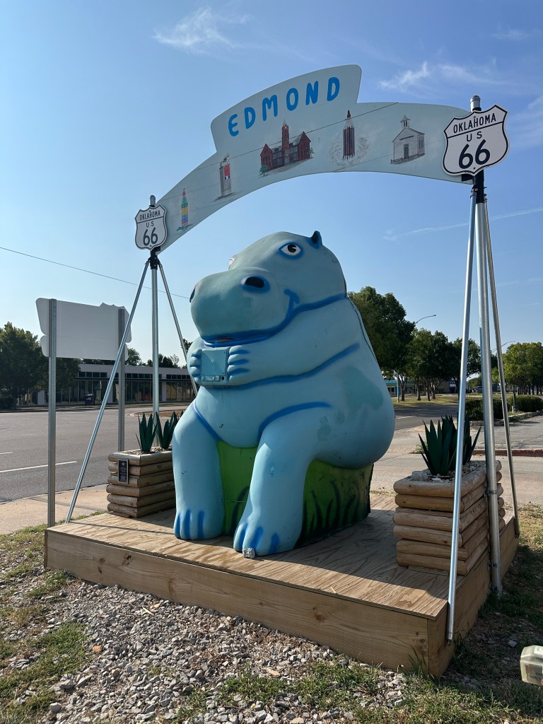 Hey, friend! Welcome back to another post. Today, I want to show a giant blue hippo that sits on the side of historic Route 66 in Edmond, Oklahoma. Let’s get started!